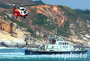 今天的演習由民航處籌辦,于南丫島東澳灣舉行,百多人參加。演習分三部分進行,包括由政府飛行服務隊和民眾安全服務處聯合在東澳灣山邊進行拯救,并由政府飛行服務隊派出超級美洲豹AS332L2型直升機示范在甲板吊救模擬傷者,消防處的潛水隊伍隨即示范海上搜救。最后,駐港部隊派出一架“直九”直升機進行空中搜索示范,結束整項短程演習。