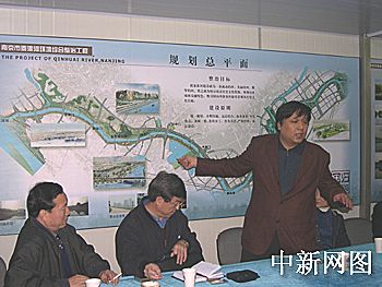 圖:采風(fēng)團(tuán)聽(tīng)取秦淮河整治工程介紹