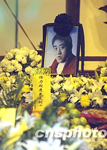 柯受良家屬在上海龍華寺三圣殿為柯受良舉行法事超度儀式,圈中好友曾志偉、韓紅等陸續來到現場祭奠。中新社記者:湯彥俊