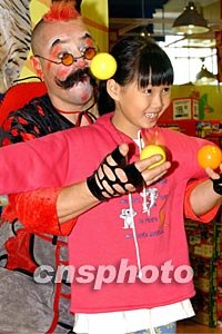 來自俄羅斯的莫斯科馬戲團(tuán)十二月十六日在香港舉行演出發(fā)布會,該團(tuán)將在香港連續(xù)進(jìn)行為期數(shù)月的演出活動,全新的馬戲節(jié)目為香港觀眾帶來歡樂、刺激的新感受。圖為馬戲團(tuán)小丑指導(dǎo)小朋友練雜耍。中新社記者:錢興強