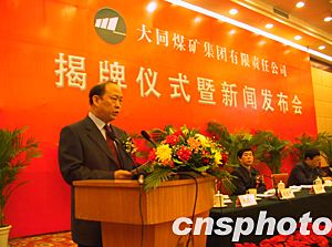 十二月二十一日,中國產(chǎn)煤大省山西對該省煤炭企業(yè)進行重大重組,組建總資產(chǎn)達二百二十億元人民幣的大同煤礦集團公司,以應(yīng)對日益激烈的能源市場競爭。大同煤礦集團公司董事長彭建勛在揭牌儀式上表示,要努力使該集團煤炭產(chǎn)銷量到二零一零年超過一億五千萬噸,躋身世界十大煤炭企業(yè)行列。中新社記者:齊彬