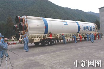 圖:"長(zhǎng)征二號(hào)丙"改進(jìn)型運(yùn)載火箭準(zhǔn)備運(yùn)往發(fā)射場(chǎng)