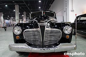 2004浙江國際汽車展1月1日在杭州和平會展中心開幕,一輛蔣介石三十年代用過的轎車——1934年中國第一座鐵路公路大橋建成通車典禮上第一輛通過大橋的轎車亮相展廳,為眾多觀眾所關(guān)注。作者:吳敏