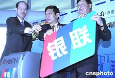 中國銀行(香港)一月十九日在香港舉行“銀聯卡”到港消費服務新聞發布會,宣布在香港首創“銀聯卡”服務,讓中國5億銀聯卡卡戶在香港逾4,000個貼有“銀聯卡”標志的商號受理點,以“銀聯卡”刷卡消費。圖為“銀聯卡”發布會啟動儀式。作者:錢興強