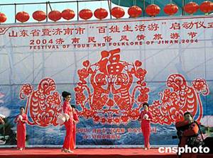 中國農歷大年初一上午,山東省濟南市政府與省旅游局聯合在省城泉城廣場舉辦“二00四濟南春節民俗風情旅游節”。開幕式上,來自各地的藝術家為廣大市民和海內外游客表演了民俗藝術和歌舞等精彩的節目。作者:胡洪林