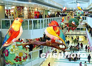 盡管禽流感襲擊亞洲諸多城市,但是香港一些商場依然用繽紛璀璨的禽鳥燈飾來裝飾即將來臨的元宵佳節。作者:潘索菲