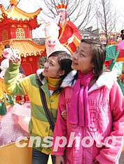 一月二十八日(正月初七),兩名學生在南京夫子廟游玩時,被“鬧元宵”的花燈所吸引。一年一度的十五鬧花燈活動即將拉開帷幕,各地的扎燈藝人紛紛亮出絕活,扎出一組組形態各異的花燈,以饗游客。作者:丁東升