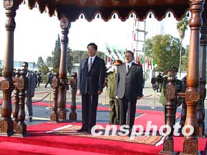當(dāng)?shù)貢r間三日下午三時許,中國國家主席胡錦濤抵達(dá)阿爾及利亞首都阿爾及爾,開始對阿爾及利亞進(jìn)行為期兩天的國事訪問。阿爾及利亞總統(tǒng)布特弗利卡親到機(jī)場迎接,并舉行儀式,熱烈歡迎胡錦濤主席訪阿。阿爾及利亞是胡錦濤此次歐非四國之行的最后一站。中新社記者:齊彬 攝