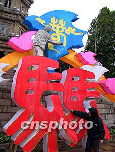 二月四日,馬尾民間節(jié)人制作的七盞大花燈在馬尾港由有關人員搬上馬祖“閩珠二號”,準備參加馬祖元宵燈會。今年元宵佳節(jié),馬祖、馬尾將第二次共同舉行“兩馬”鬧元宵燈會活動。作者:劉可耕