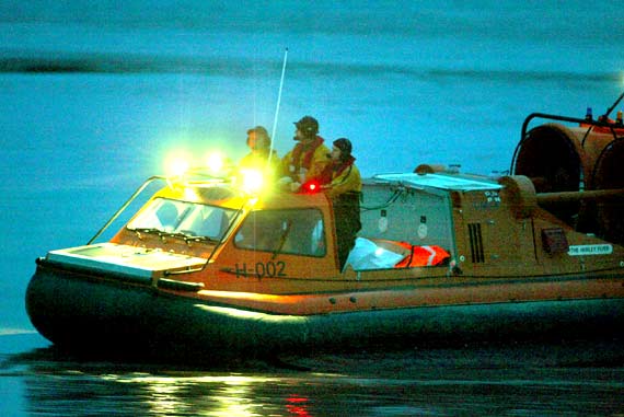 圖:英國救援人員乘救生艇在海灣搜尋遇難者