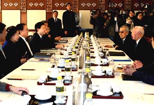 曾蔭權(quán)在會(huì)后向記者形容,這是一次充實(shí)而友好的交談。