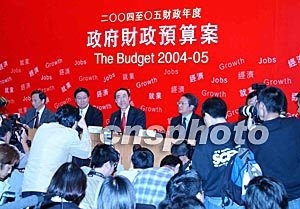 圖:香港財長唐英年發(fā)表首份財政預算案