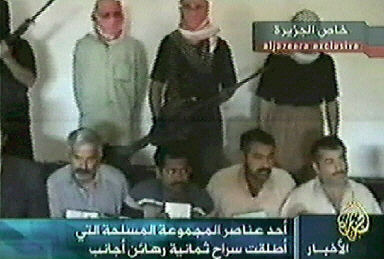 半島電視臺11日播放的一盤錄像帶顯示,,伊拉克反美武裝分子即將釋放8名外國人質,包括2名土耳其人、3名巴基斯坦人、1名尼泊爾人、1名菲律賓人和1名印度人。