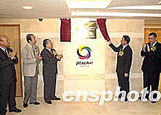 圖為澳門特區行政長官何厚鏵為「第四屆東亞運動會澳門組委會總部」新大樓揭牌。