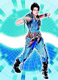 據了解,九大巨星在廣告中會以英雄造型出現,周杰倫和鄭秀文的新造型前天曝光,周杰倫的造型噱頭十足,他忍受三小時接發和扎小辮子,打扮成射箭英雄,鄭秀文則風情萬種。
