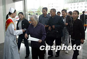 北京四月二十二日確診一例SARS疑似病例后,北京市迅速啟動相應的SARS預警機制,各家醫院二十三日對所有進入醫院的人實行嚴格的體溫測試。中新社記者:任晨鳴