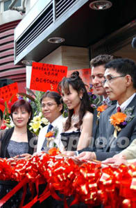 在國內擁有三十間珠寶專門店的『美億珠寶』,擴充香港區業務發展,4月23日舉行新店開幕儀式。圖為主禮嘉賓主持剪彩儀式。作者:洪少葵