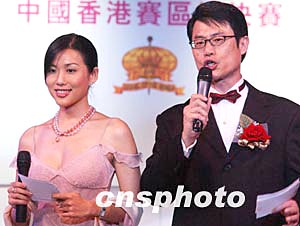 香港藝員鄧英敏、黃琛如,四月二十九日晚在香港舉行的第十六屆世界模特小姐選拔賽上出任司儀。