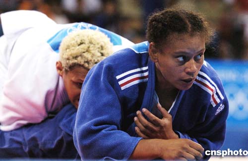 圖為當地時間8月19日在雅典舉行的柔道78公斤以下級比賽法國選手來布朗(藍)在與巴西選手的對決。