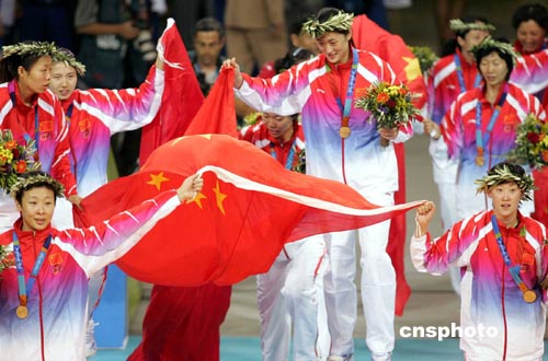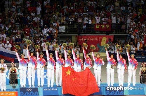 當(dāng)?shù)貢r(shí)間八月二十八日晚,在雅典奧運(yùn)會(huì)女排決賽中,中國女排在先失兩局的情況下,連續(xù)扳回后三局,最終以三比二戰(zhàn)勝俄羅斯隊(duì)而獲得冠軍。中新社記者:毛建軍