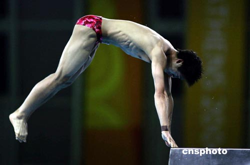 當(dāng)?shù)貢r間8月28日晚,在雅典奧運會跳水最后一項比賽--10米跳臺決賽中,奪標(biāo)呼聲最高的“跳水王子”田亮意外失手,僅僅獲得第三名。中新社記者:任晨鳴