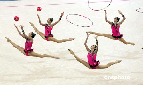雅典時間8月28日,2004年奧運會藝術(shù)體操決賽在雅典舉行,俄羅斯隊以51.100分的最高分奪得冠軍。中新社記者:王瑤