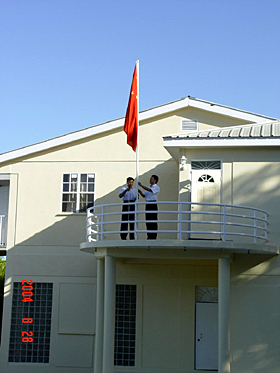 中新網(wǎng)8月30日電 據(jù)中國(guó)外交部網(wǎng)站消息:8月25日,中國(guó)駐多米尼克國(guó)大使館正式進(jìn)駐大使館館舍。8月26日清晨,王新平臨時(shí)代辦和王勇三秘第一次在使館升起鮮艷的五星紅旗。