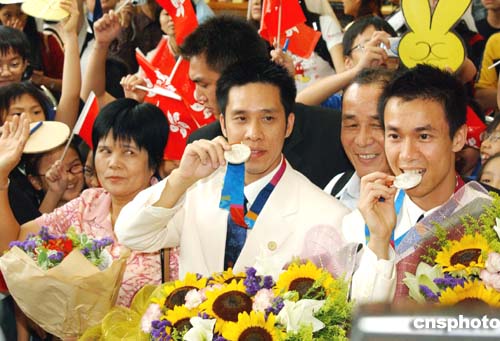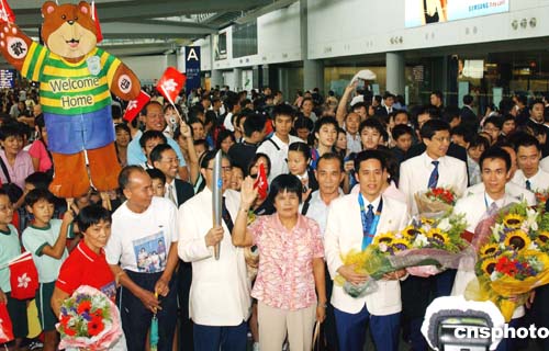 在2004雅典奧運會獲取佳績的中國香港奧運代表團,八月三十一日凱旋返港,受到香港各界人士及眾多傳媒的熱烈歡迎及采訪。作者:錢興強