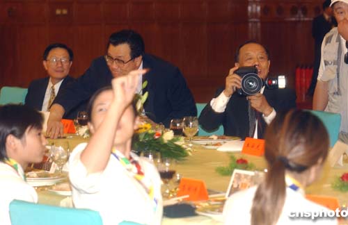 外交部部長李肇星興之所至,借來記者的相機(jī)為奧運健兒留下精彩瞬間。中新社記者:武仲林