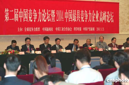 第二屆中國競爭力論壇暨2004最具競爭力企業(yè)高峰論壇在京開幕。中新社記者:滿會喬