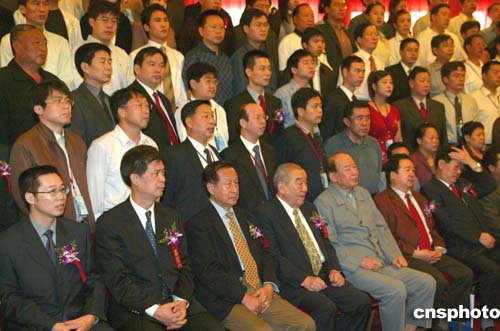 中國新聞社總編輯郭招金在會上發(fā)布2004年中國最具競爭力中小企業(yè)500強。中新社記者:滿會喬