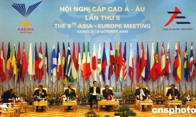 中新社河內(nèi)十月八日電(記者吳慶才)第五屆亞歐首腦會(huì)議今天上午在越南首都河內(nèi)舉行隆重的開幕式。此次為期兩天的會(huì)議是該組織正式接納十三個(gè)成員國之后,成為包括新成員在內(nèi)的亞歐三十九方的首次聚會(huì),也是迄今為止參加方最多的一次會(huì)議。