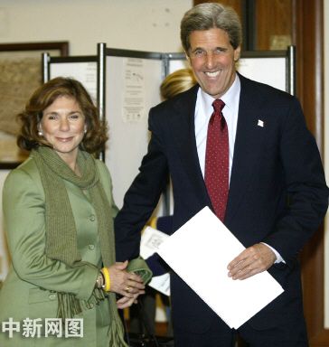 11月2日,美國民主黨總統候選人克里在其家鄉波士頓投票。
