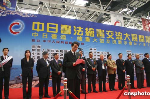 中新網(wǎng)11月6日電(記者邱觀史)為期三天的“中日書法繪畫交流大展”6日在美麗的太湖之濱江蘇無錫拉開帷幕。百名中日書畫家展示他們傾心裝做的200余幅作品,為觀眾獻上極富美感的視覺享受。中國文化部副部長常克仁出席開幕式并發(fā)表講話。