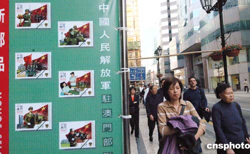 澳門郵政局將于十二月一日發行“中國人民解放軍駐澳部隊”郵品,該新郵品反映了駐澳部隊依法駐軍,從嚴治軍,苦練精兵,熱心公益,樹立了威武之師、文明之師的良好形象。作者:梁永強
