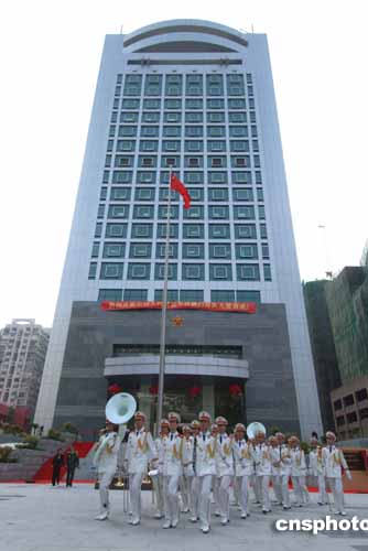 三日,解放軍駐澳部隊為新建的「駐澳門部隊大廈」舉行落成典禮,澳門特首何厚鏵、廣州軍區副政委張國初中將為新的指揮大樓揭幕。作者:梁永強