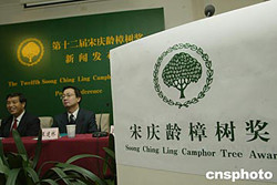 十二月十一日,中國福利會在北京公布第十二屆宋慶齡樟樹獎評選結果。宋慶齡樟樹獎是表彰為中國婦幼事業(yè)做出突出貢獻的國內(nèi)外人士設置的獎項。本屆五名獲獎者分別是全國婦聯(lián)名譽主席彭佩云、著名社會活動家陳香梅、聯(lián)合國兒童基金會駐華辦事處首席代表伍德琛、國際“微笑列車”總裁白堅龍和公安部刑偵局調(diào)研員祝燕濤。中新社記者:史利