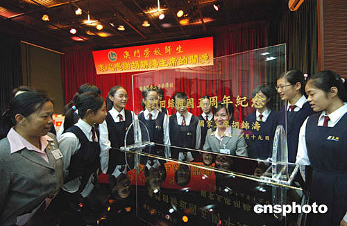 中新社澳門十二月十九日電(記者董會峰)今天下午四時三十分,國家主席胡錦濤來到澳門勞工子弟學校視察,受到該校師生熱烈歡迎。