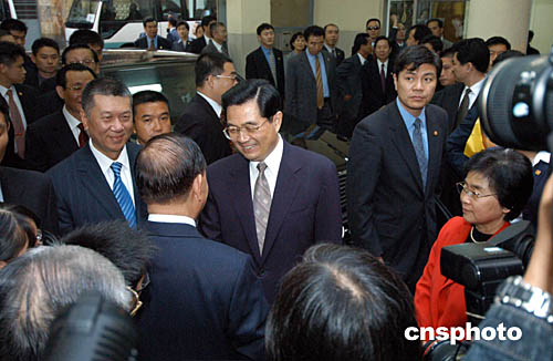 胡錦濤與夫人劉永清在澳門特首何厚鏵的陪同下參觀澳門勞工子弟學校,受到學校師生的熱烈歡迎。