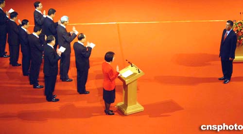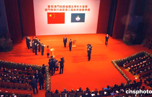 稍后,胡錦濤將走上主席臺主禮儀式。在他的監誓下,何厚鏵將宣誓就任澳門特別行政區第二任行政長官;特區政府主要官員及檢察長宣誓就職。(完)