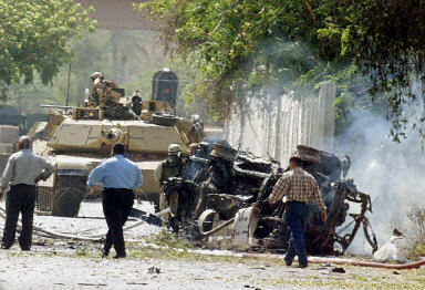 自從美軍進駐巴格達后,汽車爆炸似乎成了家常便飯,救援工作也因此變得駕輕就熟。薩利姆的汽車被炸后不久,數輛救護車便趕到了現場,戴著面具和橡膠手套的救援人員迅速行動起來,從被汽車殘體里往外拖那些已經被燒得血肉模糊的尸體。聞訊而來的記者們看到,現場現場散落著鞋子和碎尸,一只被炸斷的腳恐怖地掛在30米以外的錢絲網上。