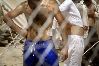 5月17日,在巴格達西郊的阿布格萊布監獄,幾名伊拉克囚犯向記者展示傷口。