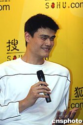 五月二十三日下午,已經成為NBA巨星的姚明在北京做客搜狐網,和媒體記者以及網友面對面交流。中新社記者:盛佳鵬