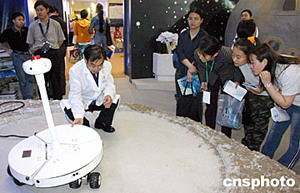 另?yè)?jù)悉,一款名為“喀嗎哆”的月球機(jī)器人樣機(jī),由解放軍裝備指揮技術(shù)學(xué)院科研部研制成功。這款月球機(jī)器人高九十厘米,重三十五公斤,看起來(lái)像個(gè)小型電視塔,上邊是個(gè)帶著天線的小圓碟,中間是個(gè)長(zhǎng)長(zhǎng)的柱子,底下是一個(gè)很大的圓盤(pán)。(王德軍)