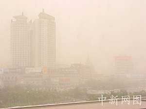 六月十四日傍晚,北京遭遇大風揚塵天氣,夕陽在烏云、沙塵作用下,呈現出少見的天象。中新社記者:武仲林