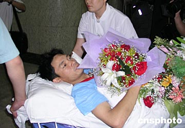 晚十一點,在醫(yī)務人員登機為傷員們檢查身體后,兩位山東省諸城籍的輕傷員邁步走下了飛機舷梯,等候的人群頓時發(fā)出了“歡迎回家”的親切呼喚。聽到這親切的鄉(xiāng)音,兩位傷員流下了激動的淚花。晚十一點零七分和十一點十分,兩位重傷員被醫(yī)護人員用擔架抬下了飛機。
