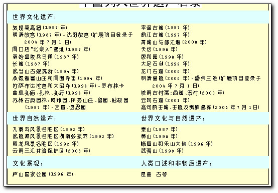 6月28日至7月7日,第28屆世界遺產(chǎn)委員會(huì)會(huì)議在蘇州召開,來自100多個(gè)國家的500余名代表聚首探討人類保護(hù)世界遺產(chǎn)。到現(xiàn)時(shí)為此,已經(jīng)有超過730個(gè)地點(diǎn)被納入世界遺產(chǎn)名錄。下面是部分世界遺產(chǎn)項(xiàng)目。