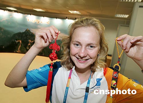 (當(dāng)?shù)貢r(shí)間)二○○四年八月八日,2008北京奧運(yùn)會(huì)組委會(huì)在希臘雅典奧運(yùn)會(huì)新聞中心設(shè)立展臺(tái),宣傳北京奧運(yùn)以及新北京的面貌。中新社記者:毛建軍