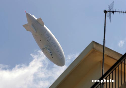 8月10日,一艘碩大的飛艇從雅典居民樓上空飛過。這架搭載了眾多先進監視設備的齊柏林飛艇每天在雅典上空來回盤旋并不停拍照。部分雅典市民對此表示不滿,他們認為飛艇威脅到他們隱私權。中新社記者:張煒