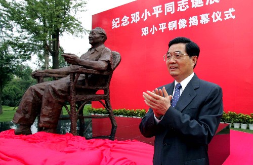 在揭幕儀式上,胡錦濤表示,鄧小平為中國(guó)革命、建設(shè)、改革事業(yè)建立的偉大功勛將永載史冊(cè),他留下的寶貴精神財(cái)富將永遠(yuǎn)激勵(lì)我們前進(jìn)。上午九時(shí)十五分,胡錦濤親手揭下覆蓋在鄧小平銅像上的紅綢。一時(shí)熱烈的掌聲雷動(dòng)。